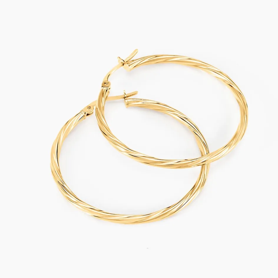 Créoles Or Jaune 750/1000 Fil Rond Torsadé Largeur 2mm Diamètre 30mm
