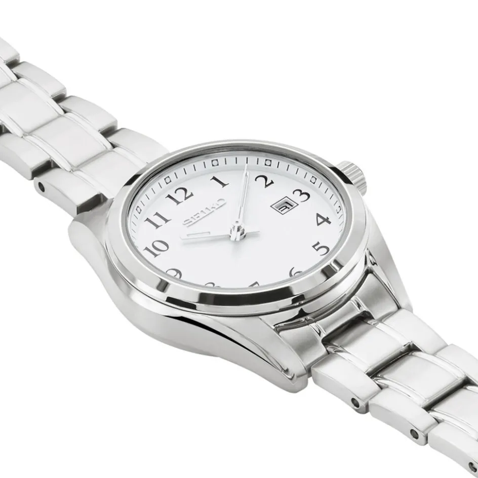 Montre Seiko Classique Acier Blanc Ronde Quartz 29.8mm Fond Blanc Bracelet Acier Gris Sur465p1