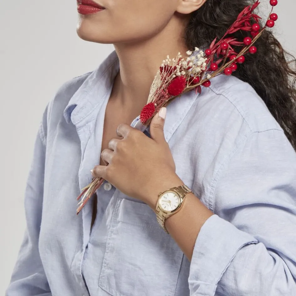 Montre Seiko Classique Acier Dore Ronde Quartz 29.8mm Fond Blanc Bracelet Acier Dore Sur632p1
