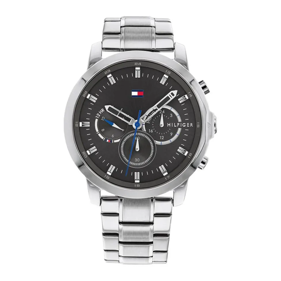 Montre Tommy Hilfiger Jameson Acier Blanc Ronde Quartz Chronographe 44mm Fond Gris Bracelet Acier Argenté 1791794