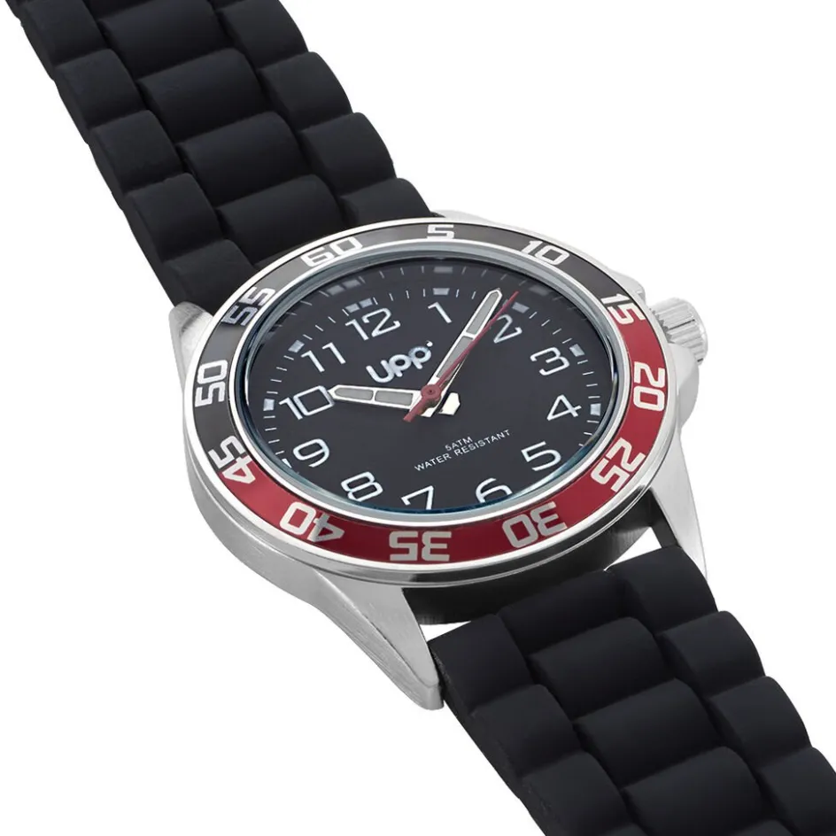 Montre Upp Axel Alliage Argenté Ronde Quartz 33mm Lunette Noire Fond Noir Et Rouge Bracelet Silicone Noir Wba0134-004