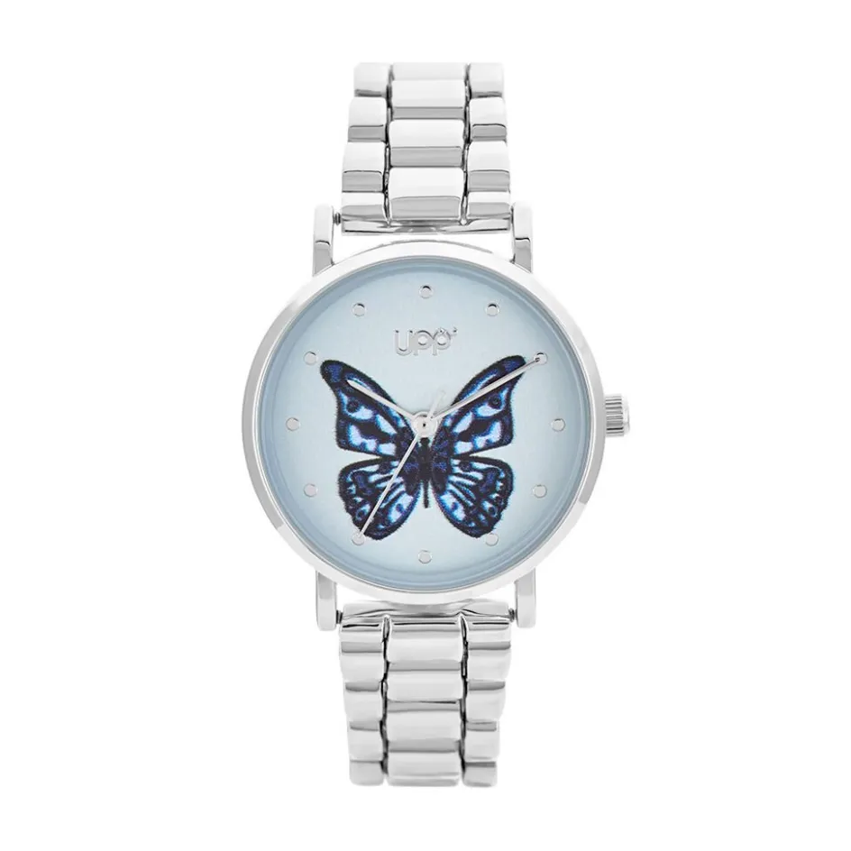 Montre Upp Solena Alliage Argente Ronde Quartz 29mm Fond Bleu Papillon Bracelet Alliage Argente Wbc0131-006