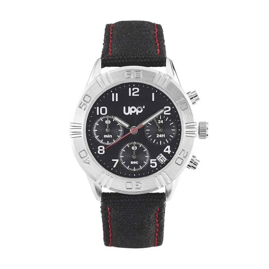 Montre Upp Lucas Alliage Argenté Ronde Quartz 36.5mm Lunette Argentée Fond Noir Bracelet Tissu Noir Et Couture Rouge P100915-b