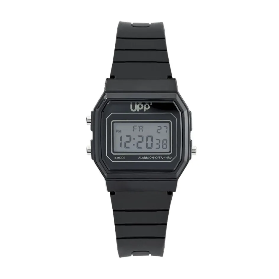 Montre Upp Square Plastique Noir Octogonal 38mm Fond Noir Bracelet Silicone Noir P101037-a